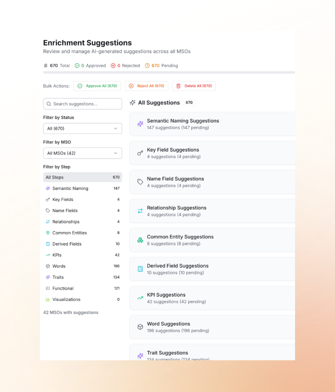 We don't believe in manual labor for machine-level tasks. App Orchid platform performs an Automated Ontology Discovery and Enrichment. Instead of starting with a blank slate, our system "reads" your database schema, analyzes the actual data, and suggests a candidate ontology. This is why the shift toward Automated Ontology Discovery is becoming a baseline requirement for any serious AI roadmap.