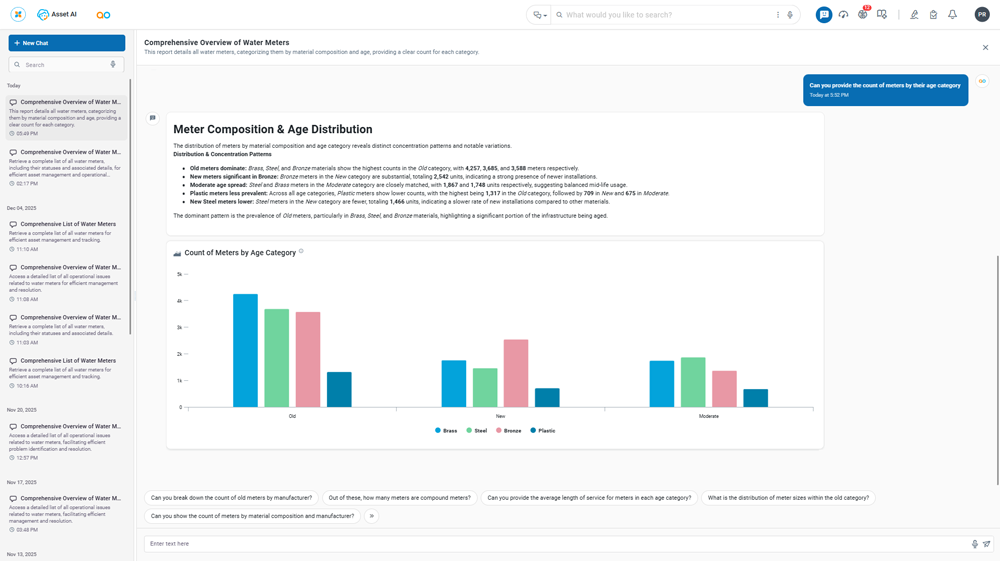 In Dashboard Mode, the focus is on permanence and structure. You can ask natural language questions—like "What is our maintenance spend by region?"—and instantly pin the resulting visualizations to a board. It’s the fastest way to build a monitoring deck, allowing you to go from zero to a fully populated dashboard in minutes, not months.