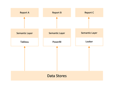 Many BI platforms (for example, PowerBI or Looker) include a semantic layer that is tightly coupled to that tool. The business metric definitions, join logic and hierarchies live inside the BI tool’s own model (or engine). That coupling creates some drawbacks: